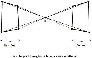 To reflect the old nodal coordinates through a point, you specify the coordinates of point a (see Figure 2.1.1–6).