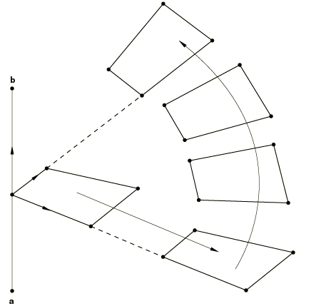 In addition, you specify the coordinates of the first point defining the rotation axis (point a in Figure 2.1.1–3), the coordinates of the second point defining the rotation axis (point b in Figure 2.1.1–3), and the angle of rotation (in degrees) about the a–b axis. The rotation can be applied multiple times as described later.