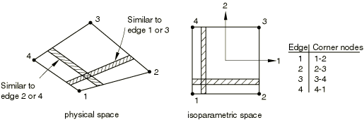 A particular face of the element, which is perpendicular to this isoparametric direction in the isoparametric mapped cube, is used to define the position of the other two edges of the surface; the faces are defined in Figure 2.2.4–12, where the edges of the faces are also defined.