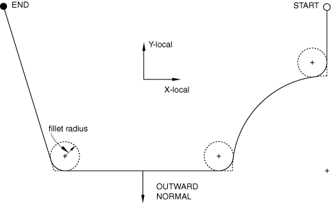 | Abaqus/CAE Usage: | When you create an analytical rigid part in Abaqus/CAE, you can create a fillet radius between segments or join the segments using arcs. See “Sketching simple objects,” Section 20.10 of the Abaqus/CAE User's Guide. |