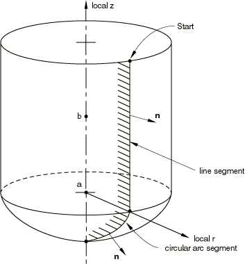 To define a rigid surface of revolution in a model that is not defined in terms of an assembly of part instances, specify the two points a and b shown in Figure 2.3.4–4 that define the local coordinate system.