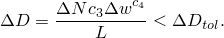 If the maximum damage increment, , is greater than the damage extrapolation tolerance that you specify, the number of cycles over which the damage is extrapolated forward is reduced accordingly to ensure the maximum damage increment is less than the damage extrapolation tolerance. On the other hand, if the maximum damage increment at all material points is less than half of the damage extrapolation tolerance that you specify, the number of cycles is increased accordingly to ensure the maximum damage increment is equal to the damage extrapolation tolerance.