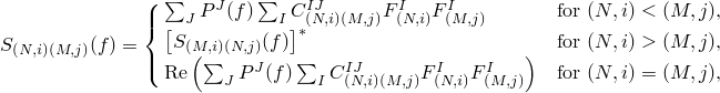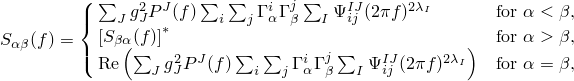 is the frequency function referenced by the Jth cross-correlation and defined as a function of the frequency f in power (force) or decibel units; and
