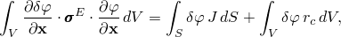 Using Ohm's law in the conservation equation, written in variational form, provides the governing equation of the finite element model: