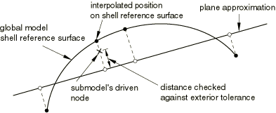 Figure 10.2.2–7 Flat surface approximation in shell-to-shell submodeling.
