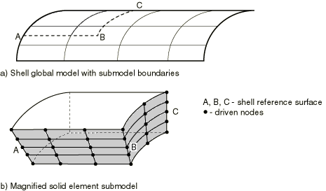 Figure 10.2.2–3 Shell-to-solid submodeling.