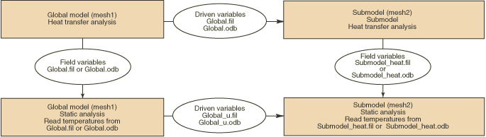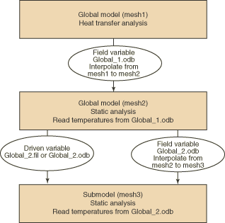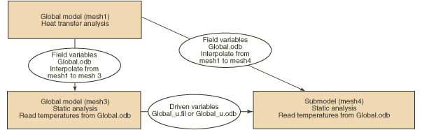 Abaqus/Standard provides multiple approaches for cases where a submodel thermal-stress analysis must be performed using temperature solutions from a global heat transfer analysis.