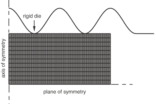 In this example a well-lubricated rigid die of sinusoidal shape moves down to deform a blank of rectangular cross-section (see Figure 12.2.1–1).