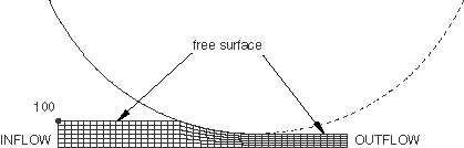 *HEADING ... *ELSET, ELSET=BILLET ... *ELSET, ELSET=INFLOW ... *ELSET, ELSET=OUTFLOW ... *NSET, NSET=INFLOW ... *NSET, NSET=OUTFLOW ... *SURFACE, NAME=INFLOW, REGION TYPE=EULERIAN INFLOW, S1 *SURFACE, NAME=OUTFLOW, REGION TYPE=EULERIAN OUTFLOW, S2 *************************** *STEP *DYNAMIC, EXPLICIT Data line to specify the time period of the step ... *ADAPTIVE MESH, ELSET=BILLET, CONTROLS=ADAPT *ADAPTIVE MESH CONTROLS, NAME=ADAPT *ADAPTIVE MESH CONSTRAINT, TYPE=DISPLACEMENT INFLOW, 1, 1, 0.0 100, 2, 2, 0.0 OUTFLOW, 1, 1, 0.0 ... *END STEPAdaptive mesh controls were not required to solve this problem; they were included for illustrative purposes (see “ALE adaptive meshing and remapping in Abaqus/Explicit,” Section 12.2.3, for details).