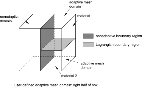 The boundary between two different materials can never “flow” through the mesh; such a physical boundary is always associated with a Lagrangian boundary region or a nonadaptive mesh boundary.