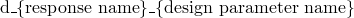The responses and response sensitivities (see “Specifying responses” above) are output only to the output database (sensitivity output to the data file and results file is not supported). The names of the sensitivities are related to the names of the responses as follows: