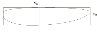 To illustrate the four stress-based failure measures, Figure 22.2.3–1, Figure 22.2.3–2, and Figure 22.2.3–3 show each failure envelope (i.e., ) in () stress space compared to the Tsai-Hill envelope for a given value of in-plane shear stress. In each case the Tsai-Hill surface is the piecewise continuous elliptical surface with each quadrant of the surface defined by an ellipse centered at the origin. The parallelogram in Figure 22.2.3–1 defines the maximum stress surface. In Figure 22.2.3–2 the Tsai-Wu surface appears as the ellipse. In Figure 22.2.3–3 the Azzi-Tsai-Hill surface differs from the Tsai-Hill surface only in the second and fourth quadrants, where it is the outside bounding surface (i.e., further from the origin). Since all of the failure theories are calibrated by tensile and compressive failure under uniaxial stress, they all give the same values on the stress axes.