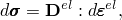 where is the rate of change of the stress (the “true,” Cauchy, stress in finite-strain problems), is the tangent elasticity matrix, and is the rate of change of the elastic strain (the log strain in finite-strain problems).