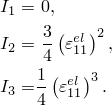 The entries in are provided by giving Young's modulus, E, and Poisson's ratio, , as functions of strain invariants. The strain invariants are defined for this purpose as