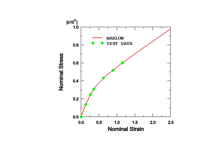 As many data points as required can be entered from each test. It is recommended that data from all four tests (on samples taken from the same piece of material) be included and that the data points cover the range of nominal strains expected to arise in the actual loading. For the (general) polynomial and Ogden models and for the coefficient