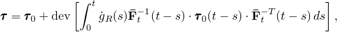 For finite strains, the Prony series expansion, in combination with the finite-strain expression for the shear stress, produces the following expression for the deviatoric stress: