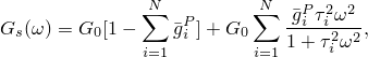The Prony series terms can also be calibrated using frequency-dependent test data. In this case Abaqus uses analytical expressions that relate the Prony series relaxation functions to the storage and loss moduli. The expressions for the shear moduli, obtained by converting the Prony series terms from the time domain to the frequency domain by making use of Fourier transforms, can be written as follows: