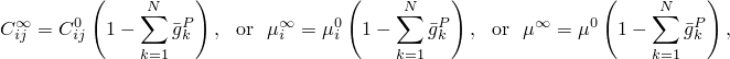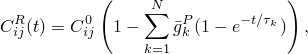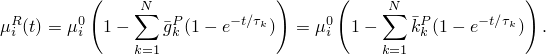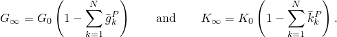 The effective relaxation moduli are obtained by multiplying the instantaneous elastic moduli with the dimensionless relaxation functions as described below.