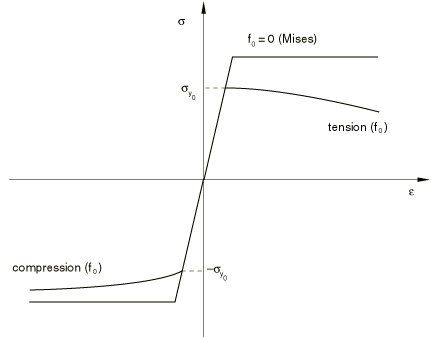 ) in tension and compression against the behavior of the perfectly plastic matrix material. In compression the porous material “hardens” due to closing of the voids, and in tension it “softens” due to growth and nucleation of the voids.