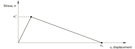 , occurs at a failure strain (defined by the failure stress divided by the Young's modulus); however, the stress goes to zero at an ultimate displacement,