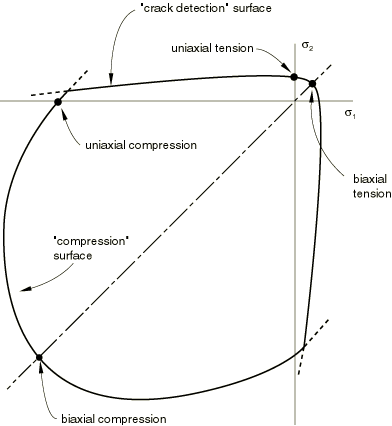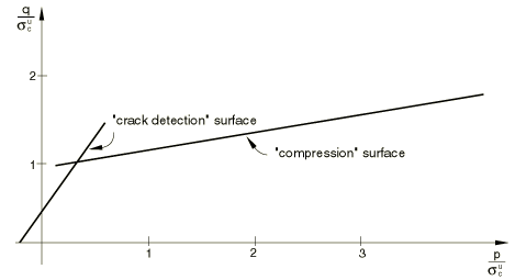 consists of an isotropically hardening yield surface that is active when the stress is dominantly compressive and an independent “crack detection surface” that determines if a point fails by cracking;