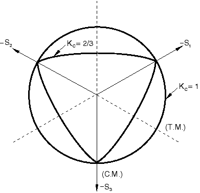 Figure 23.6.3–8 Yield surfaces in the deviatoric plane, corresponding to different values of .