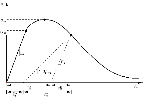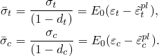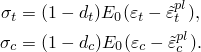 If is the initial (undamaged) elastic stiffness of the material, the stress-strain relations under uniaxial tension and compression loading are, respectively: