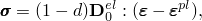 The stress-strain relations for the general three-dimensional multiaxial condition are given by the scalar damage elasticity equation: