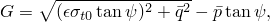 is the effective tensile cohesion stress; and