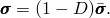 For elements with a one-dimensional stress state (i.e., truss elements, rebar, and cohesive elements with gasket behavior) their only stress component will be degraded if it is positive (tension). The material stiffness will remain unaffected under compression loading. The stress is, therefore, given by