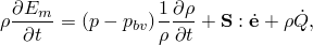 , to the rate at which work is being done by the stresses and the rate at which heat is being added. In the absence of heat conduction the energy equation can be written as