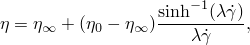 This model, which is derived from the theory of rate processes, is relevant primarily to molecular fluids but can be used in some cases to describe the viscous behavior of polymer solutions and viscoelastic suspensions over a wide range of shear rates. The viscosity is expressed as