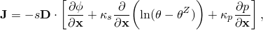 is the Soret effect factor, providing diffusion because of temperature gradient (see below);
