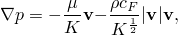 where the first term on the right-hand side is the Darcy drag and the second term is the inertial drag (also called form drag or Forchheimer drag). In the above equation