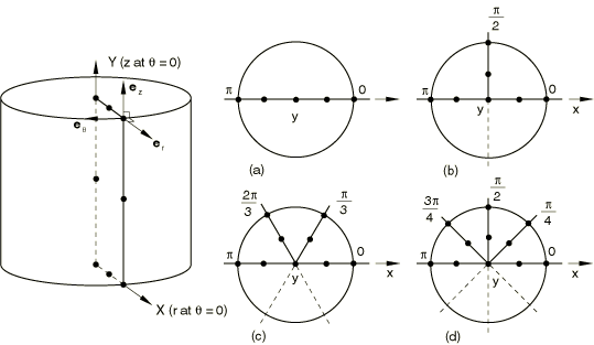 These elements use a set of nodes in each of several r–z planes: the number of such planes depends on the order N of Fourier interpolation used with respect to