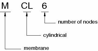 The cylindrical elements can be used in the same mesh with regular elements. In particular, regular membrane elements can be connected directly to the nodes on the cross-sectional edge of cylindrical elements. For example, any edge of an M3D4 element can share nodes with the cross-sectional edges of an MCL6 element.