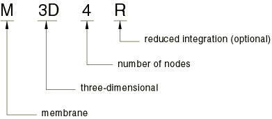 | Input File Usage: | *MEMBRANE SECTION, MATERIAL=name, ORIENTATION=name |
