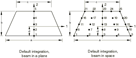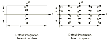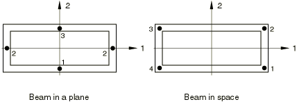 Beam in a plane: Bottom and top (points 1 and 5 above for default integration).