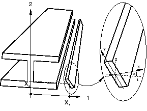 . Here the subscripts 1 and 2 refer to local, orthogonal axes in the beam section.