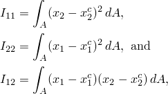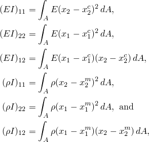 Bending stiffness and rotary inertia contributions for a meshed section profile (see “Meshed cross-sections” in “Choosing a beam cross-section,” Section 29.3.2) are calculated using the two-dimensional cross-section model. The following integrated properties are defined for the entire cross-section model meshed with warping elements: