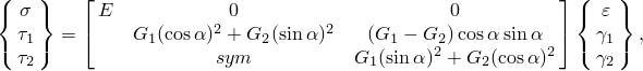 For the case of an orthotropic composite beam material, the axial stress and the two shear components and are calculated in the beam section (1, 2) axis as follows: