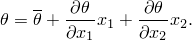 The temperature is defined from the temperature of the beam axis and the gradients of temperature with respect to the local - and -axes: