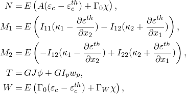 where are the local coordinates of the shear center of the beam section, is the twist of the beam axis, is the warping function, and and are shear strains due to the transverse shear forces.