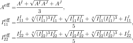 where the superscripts and refer to the two end nodes of the beam. The remaining effective geometric quantities are calculated as the average between the values at the two end nodes. This approximation suffices for mild tapering along each element, but it can lead to large errors if the tapering is not gradual. Abaqus/Standard issues a warning message during input file preprocessing if the area or inertia ratio is larger than 2.0 and an error message if the ratio is larger than 10.0.