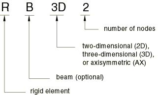 Rigid elements must always be part of a rigid body. See “Rigid body definition,” Section 2.4.1, for complete details on the definition of a rigid body.