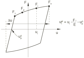 can be based on the force-constitutive motion data obtained from the first half cycle of a unidirectional tension or compression experiment. An example of such test data is shown in Figure 31.2.6–2.