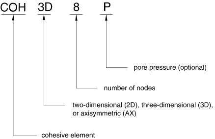 The cohesive elements used in Abaqus are named as follows:
