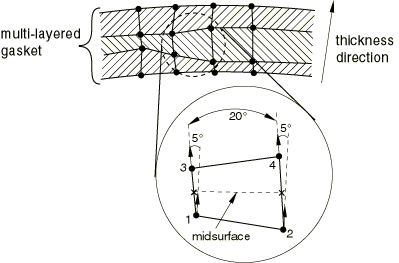 For cases when the above averaging process is not satisfactory, two methods are provided to specify the thickness direction of gasket elements.