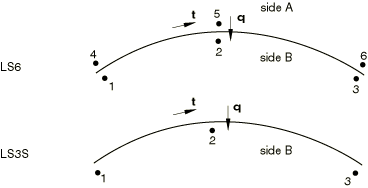 , defined when the coordinates are given (or by a user-defined normal definition). For element type LS3S the vector