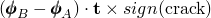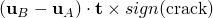 Nodes 1, 2, and 3 on the element define side B and nodes 4, 5, and 6 define side A (see Figure 32.9.2–1). The sign of the crack is defined by the surface of the shell from which the crack originates, which you identify when you define the depth of the crack (see “Line spring elements for modeling part-through cracks in shells,” Section 32.9.1). If the crack originates from the positive surface of the shell, sign(crack)=1.0; if the crack originates from the negative surface of the shell, sign(crack)=–1.0.